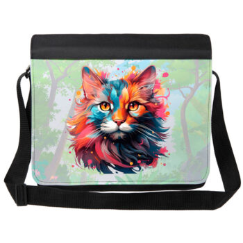 Bolsa bandolera para ordenador, con dibujo en la solapa. Solapa con cierre de velcro. Compartimento central con cierre de cremallera, bolsillo interior de rejilla con cierre de cremallera y cinta bandolera con accesorio de ajuste.